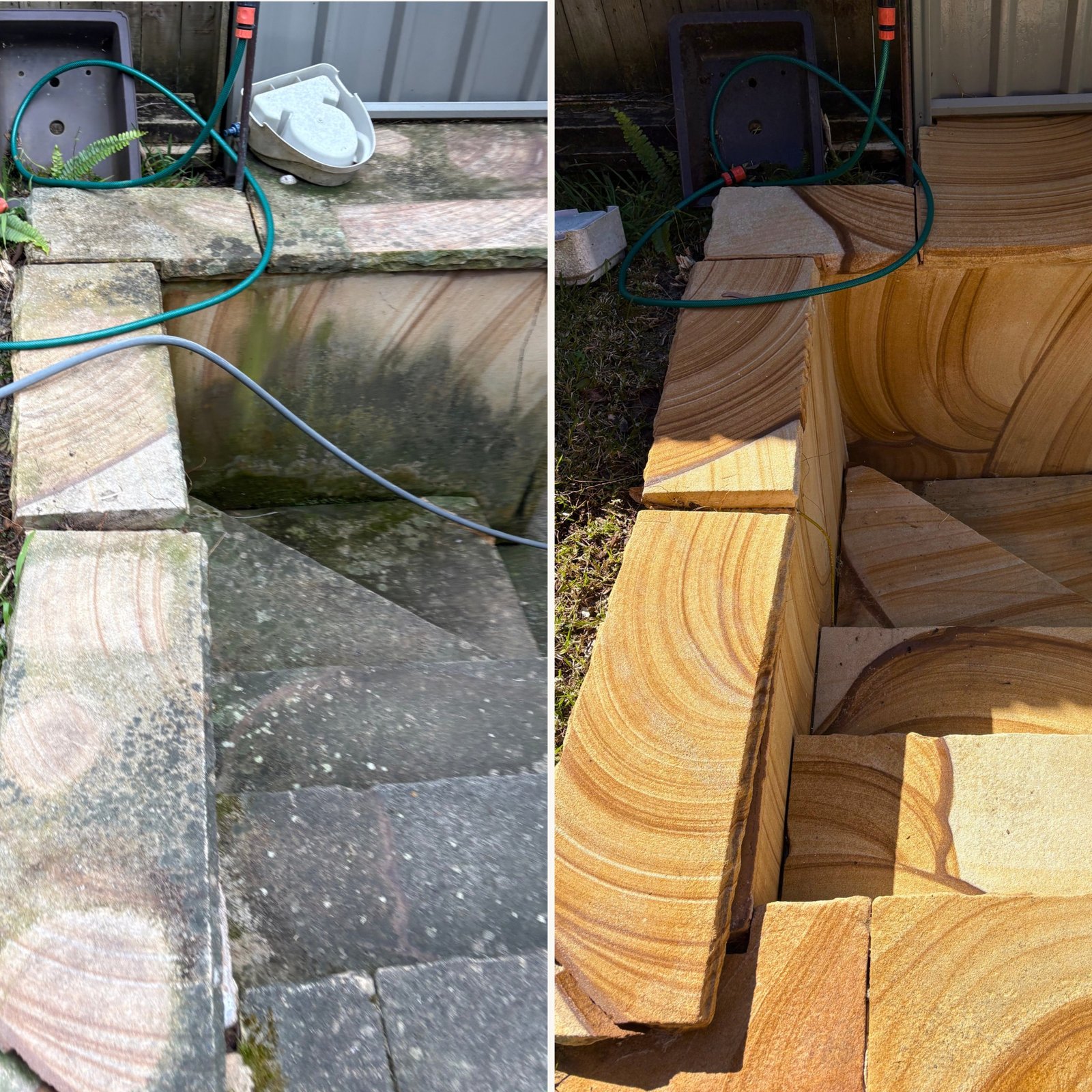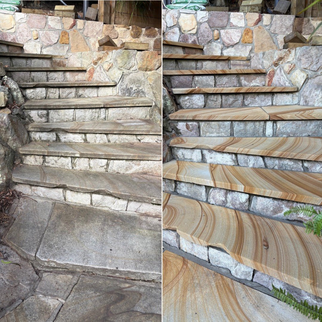 Professional cleaning of sandstone surfaces to restore natural color and long-lasting beauty.